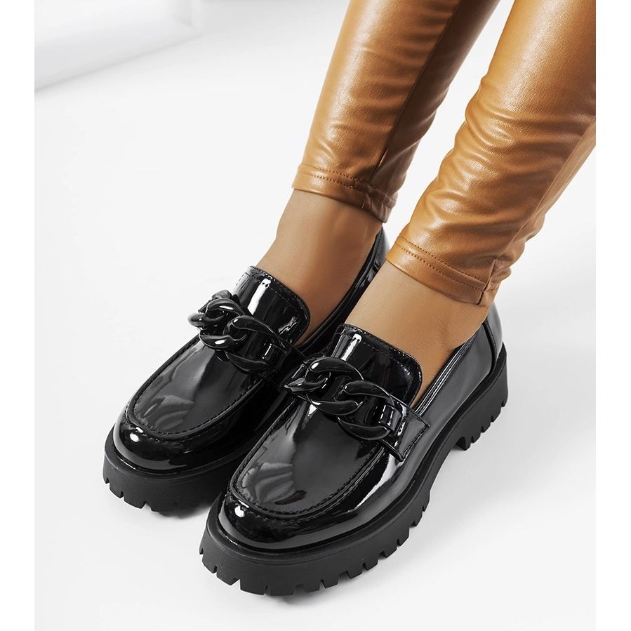 Detalles: Mocasines de charol negro con suela gruesa Dominick.