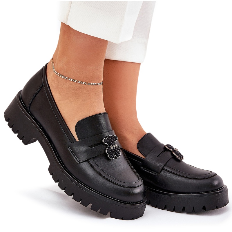 Detalles: Mocasines de cuero para mujeres con alfileres Bear Vinceza 18109 Negro
