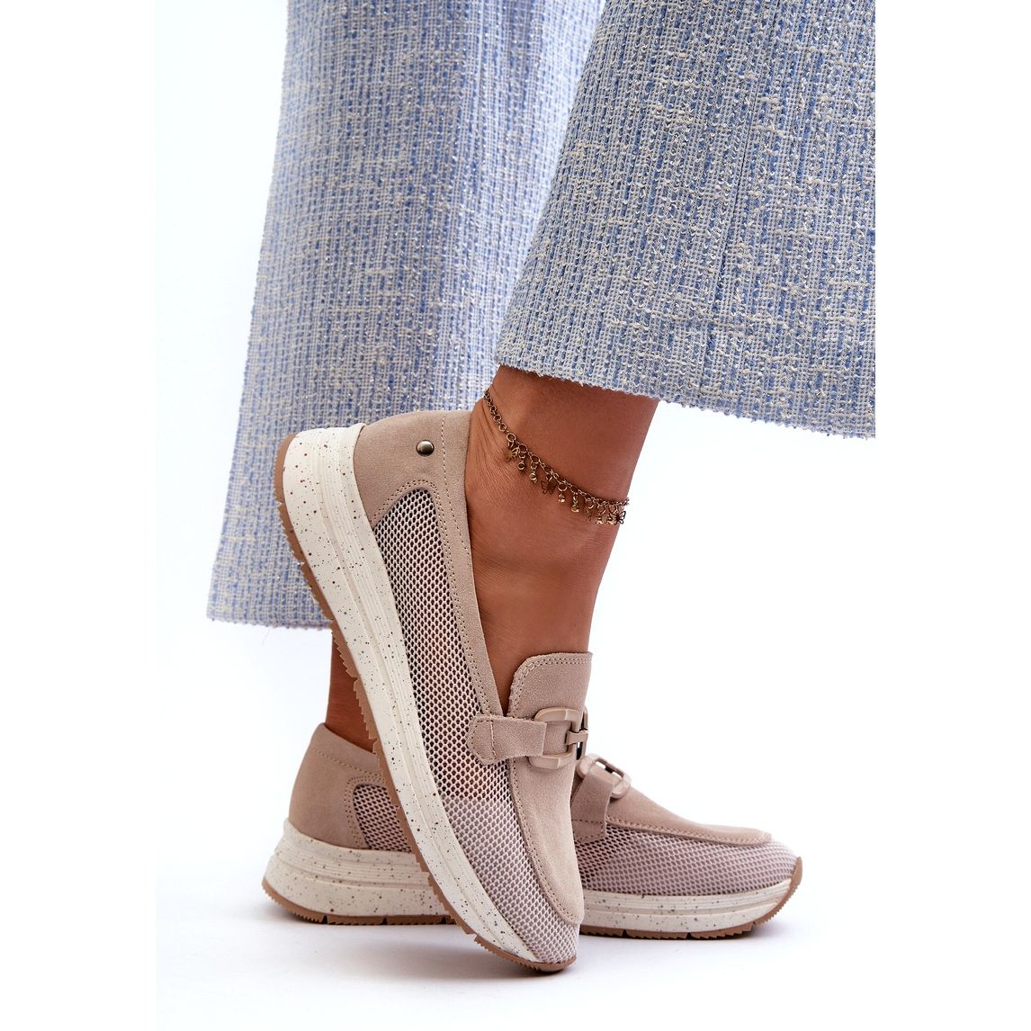 Detalles: S.Barski Mocasines de gamuza femenina TW210 beige con un adorno