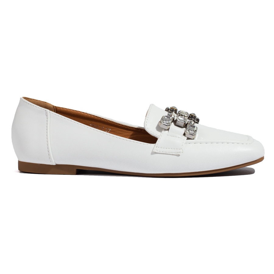 SHELOVET Mocasines de mujer blancos con decoración Shelovet