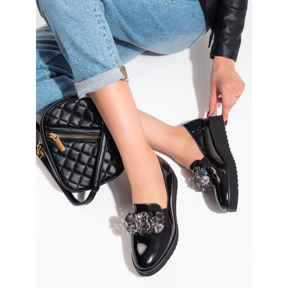 Los mocasines se distinguen por los pedrería que les dan carácter y brillo adicional. Fabricados en charol ecológico de alta calidad, no solo tienen un aspecto fantástico, sino que también garantizan una durabilidad durante mucho tiempo.