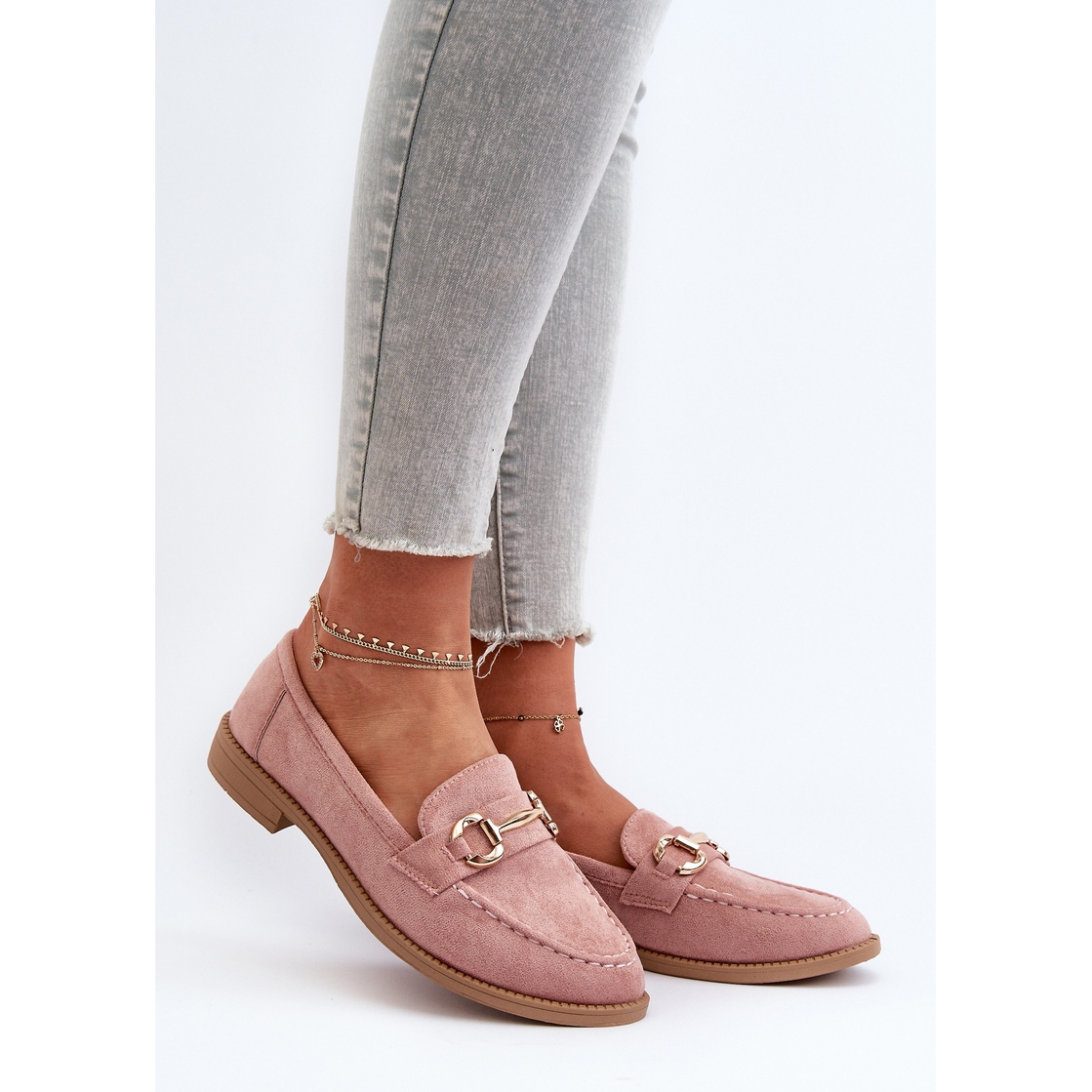 Mocasines de mujer con tacón plano y decoración de aviola rosa