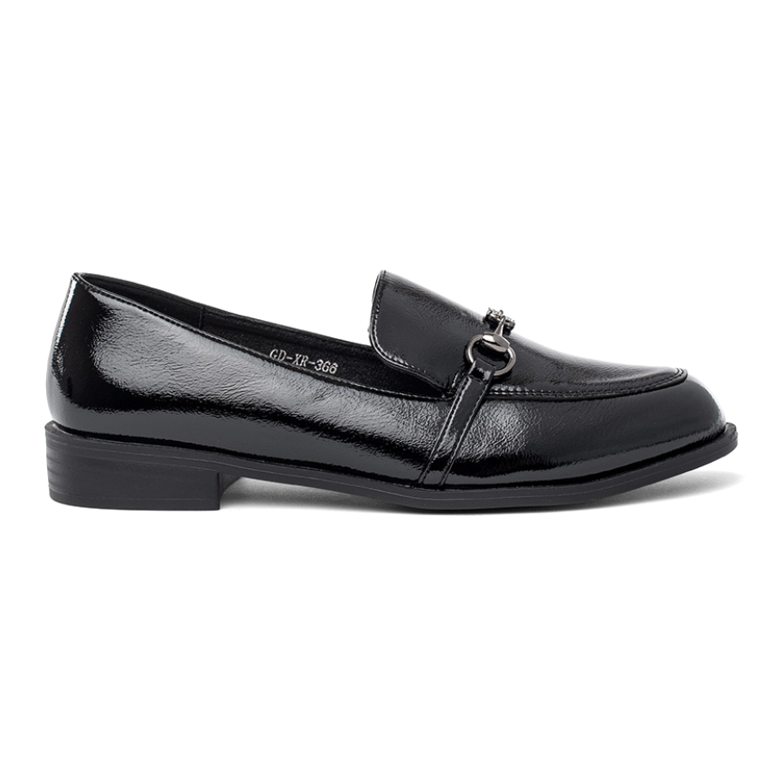 Goodin Goodin Mocasines de mujer negros barnizados con un adorno