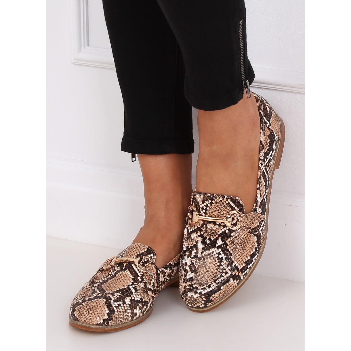 Inna marka Mocasines de mujer piel de serpiente T356P Snake Beige