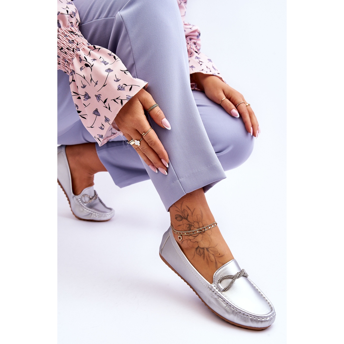 Mocasines sin cordones para mujer FC3 con decoración plateada brillante Este momento: estilo y elegancia en cada paso