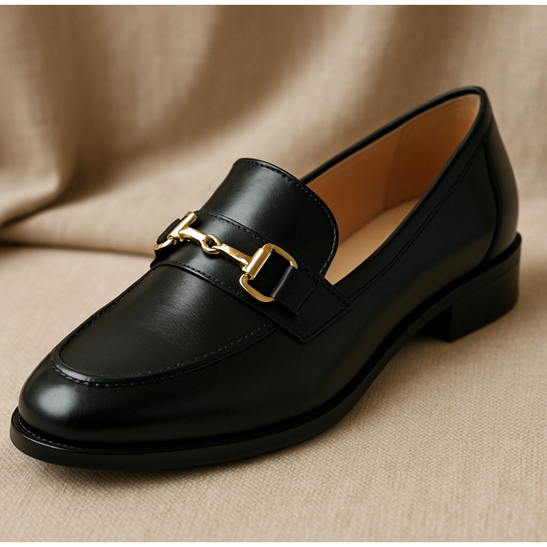 Los mocasines con bocado, también llamados mocasines con bocado, se distinguen por una hebilla de metal que se asemeja a un bocado de caballo. Este modelo, popularizado por la casa de moda italiana Gucci, es el más lujoso y elegante. Perfecto para trajes, vestidos elegantes y pantalones palazzo. Es la elección perfecta para reuniones importantes o eventos que requieran elegancia.