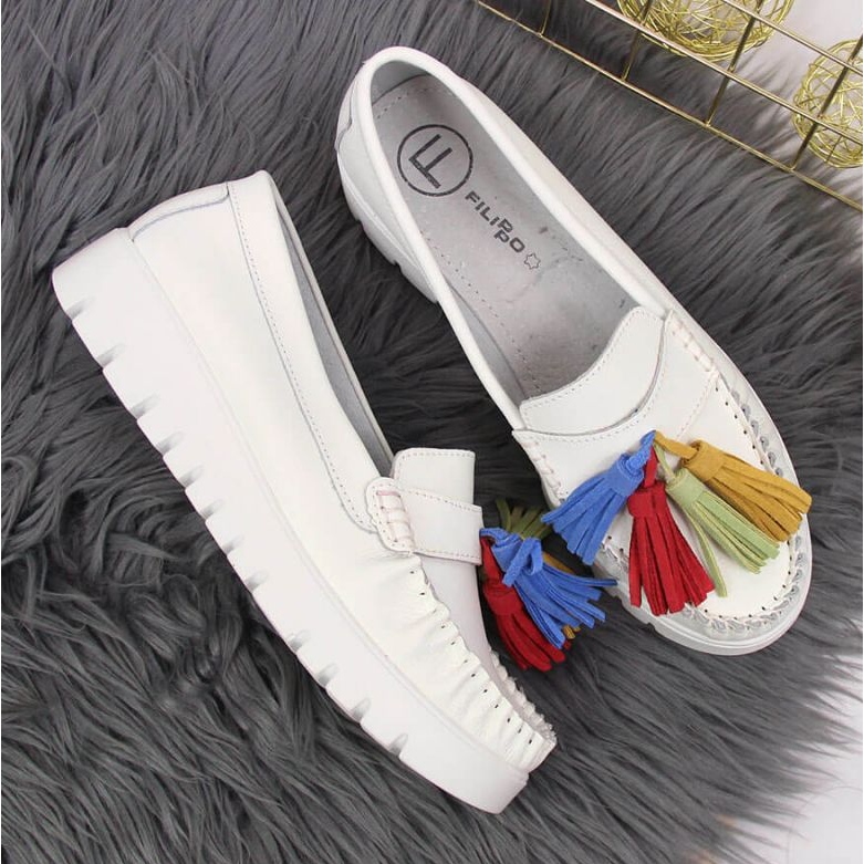 Inna marka Mocasines de piel con flecos Filippo W PAW327B blanco