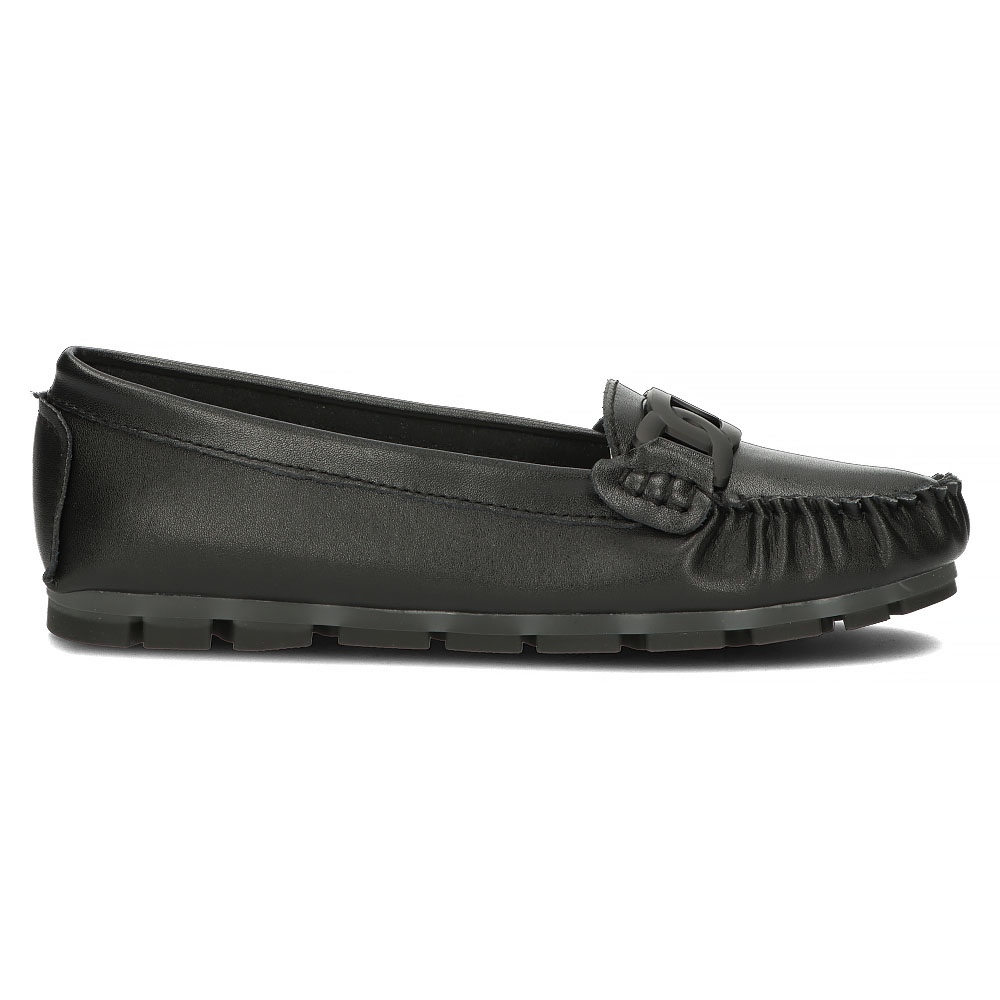 Los mocasines se caracterizan por una puntera redonda y un práctico cierre sin cordones, que garantiza comodidad de compra y uso diario. El cuero natural, del que está fabricado tanto la parte exterior del zapato como el forro, garantiza una adecuada circulación del aire y comodidad para los pies. Una ventaja adicional es la clásica suela de plástico, que garantiza estabilidad y durabilidad.
