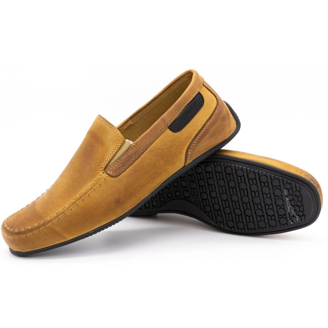 Polbut Mocasines de piel para hombre 2105, rojo, multicolor, son un calzado perfecto para las épocas más cálidas del año, dirigido a los hombres que valoran la moda. Están confeccionadas íntegramente en piel natural, tanto por fuera como por dentro, lo que asegura una excelente circulación del aire y evita que tus pies se sobrecalienten. Los zapatos son sin cordones, lo que los hace mucho más fáciles de poner. Una ventaja adicional es la delicada goma de los laterales, que garantiza que los zapatos se ajusten al pie. La suela es ligera, flexible y está fabricada en material sintético de alta calidad, lo que aumenta la comodidad de uso. El producto está pegado con cuidado y corresponde a la categoría de mocasines informales para hombre.