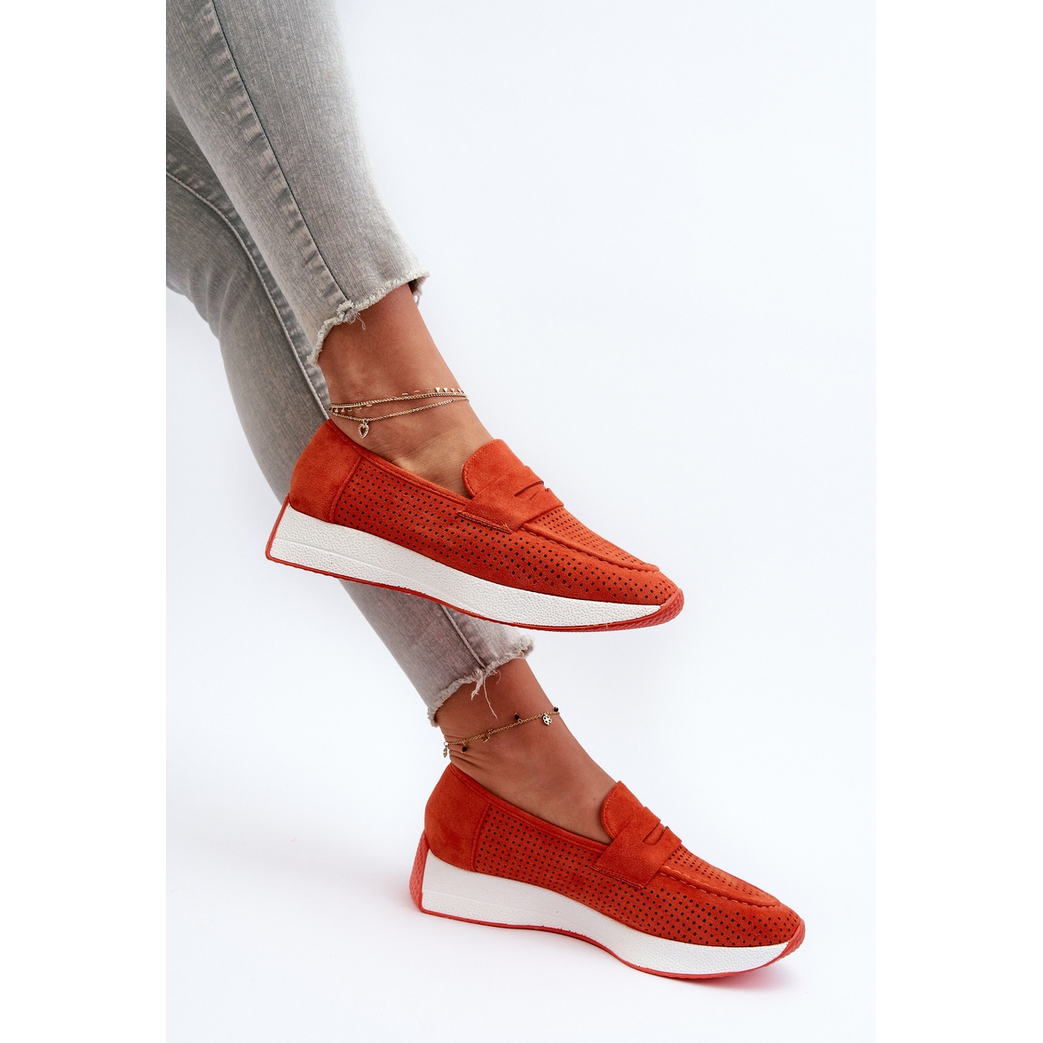 Descubre una nueva definición de elegancia y comodidad gracias a los Mocasines de Mujer On the Eco Suede Platform en color naranja. Los diseñadores saben muy bien lo importante que es combinar el estilo con la comodidad del uso diario. Estos mocasines únicos son el mejor ejemplo de ello.