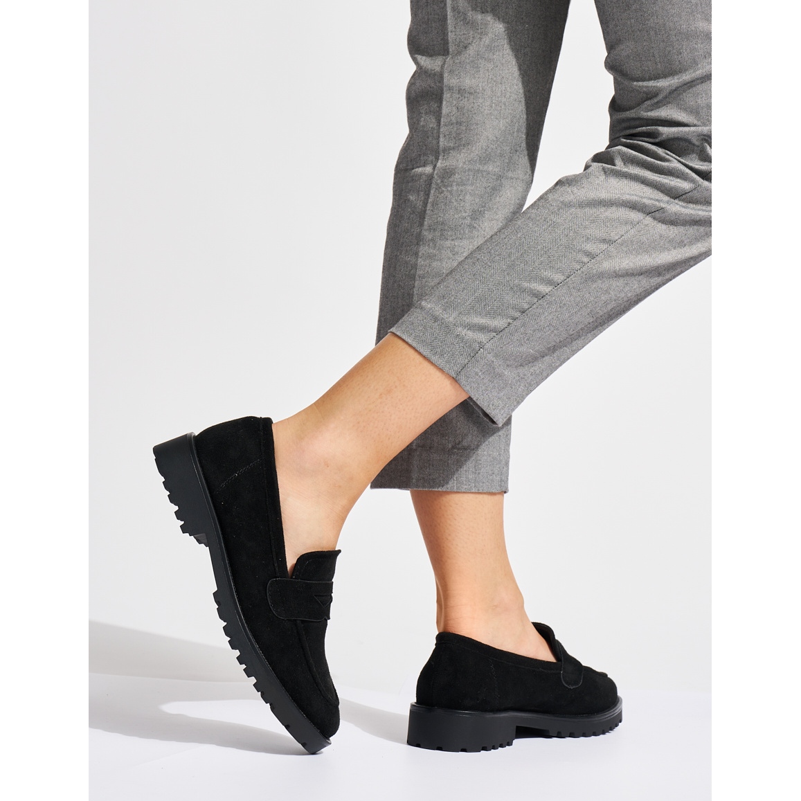 Los mocasines para mujeres de ante negros son una gran opción para cada mujer que aprecia la elegancia y la comodidad. Hecho de cuero de gamuza ecológico de alta calidad, estos zapatos combinan un diseño moderno con un estilo clásico. La parte interna de los mocasines se creó a partir de la combinación de cuero natural y la imitación de la piel, lo que garantiza la comodidad de usar todo el día.