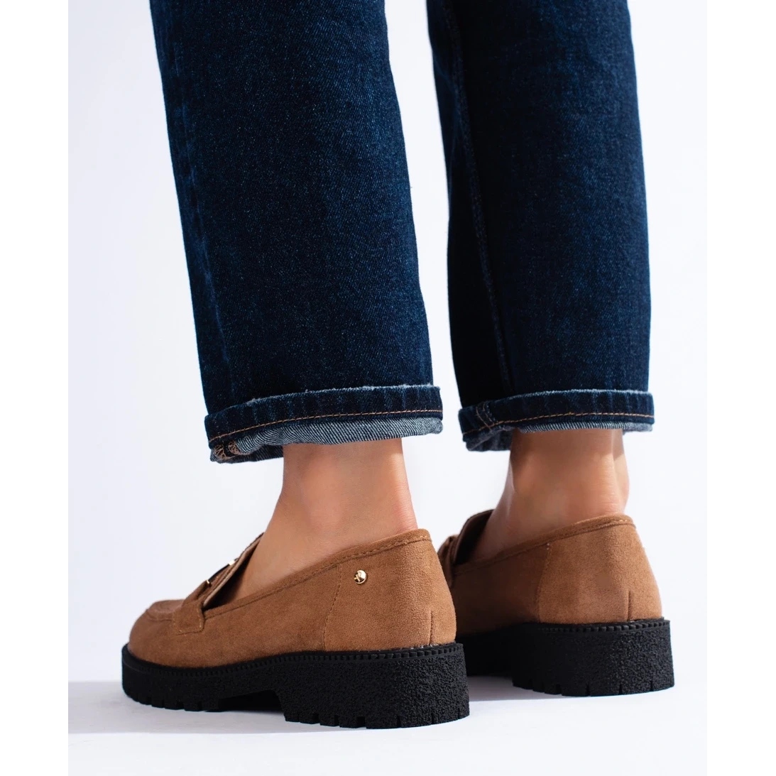 Disponibles en marrón, estos mocasines son fáciles de combinar con numerosas paletas de colores, añadiendo calidez sutil y elegancia a los conjuntos. El cierre tipo slip-on garantiza la facilidad de ponerse y quitarse los zapatos, sin tener que perder tiempo atándolos o abrochándolos.