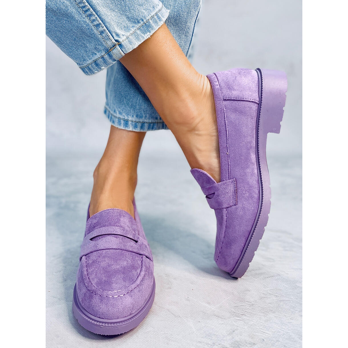 Los mocasines están equipados con una suave plantilla de piel ecológica, que hace que cada paso sea un placer. El tacón plano de 3,5 cm de altura garantiza no sólo estabilidad, sino también comodidad durante el uso durante todo el día. Gracias a la suela sintética podrás disfrutar de durabilidad y fácil cuidado.