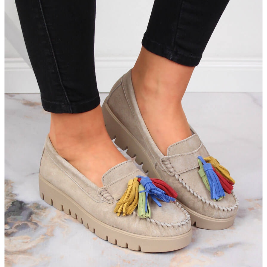 Detalles: Mocasines mujer en piel con flecos beige Filippo DP3535