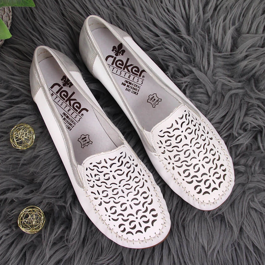 Rieker Mocasines mujer piel calada blanca Rieker L6350-80