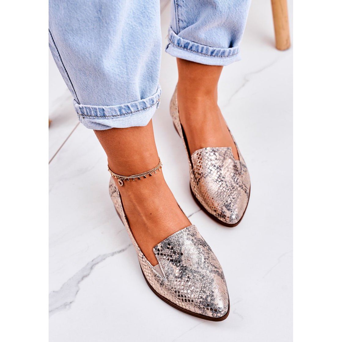 Te presentamos unos elegantes mocasines de mujer de Nicole, que deleitan con un exclusivo estampado de animales dorados. Estos zapatos únicos están fabricados íntegramente de cuero natural de alta calidad, lo que garantiza durabilidad y comodidad de uso. La plantilla de piel cuidará tus pies haciendo que cada momento con estos mocasines sea un placer.