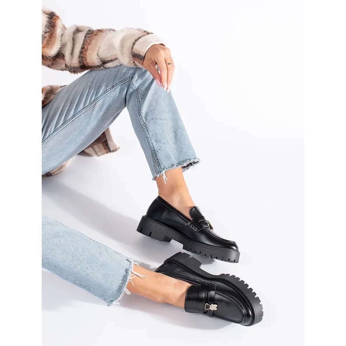 - Modelo: Mocasines negros de mujer en la plataforma.