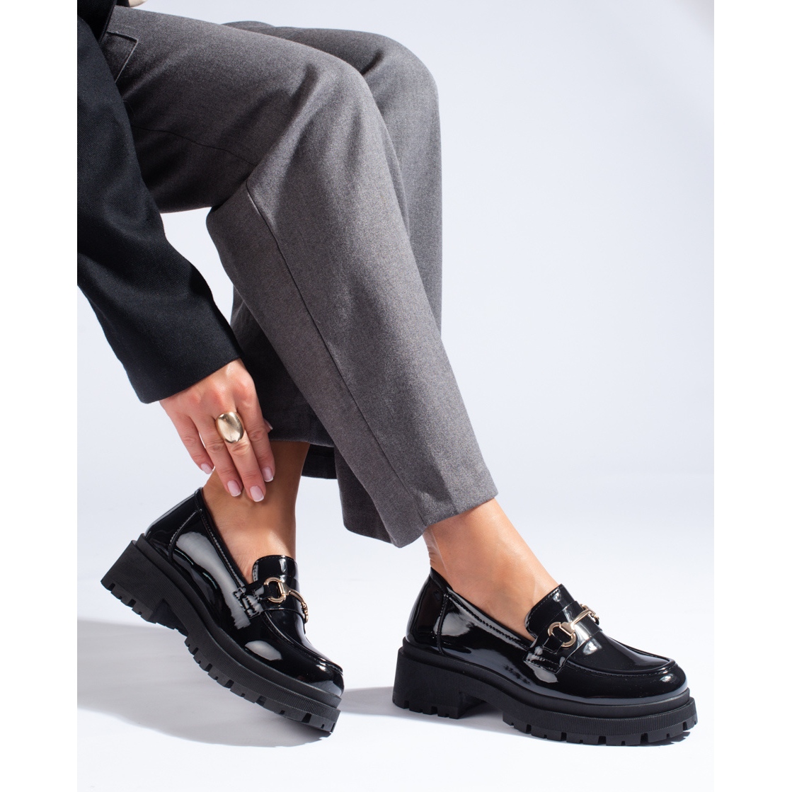 SHELOVET Mocasines Shelovet de charol con suela gruesa negro