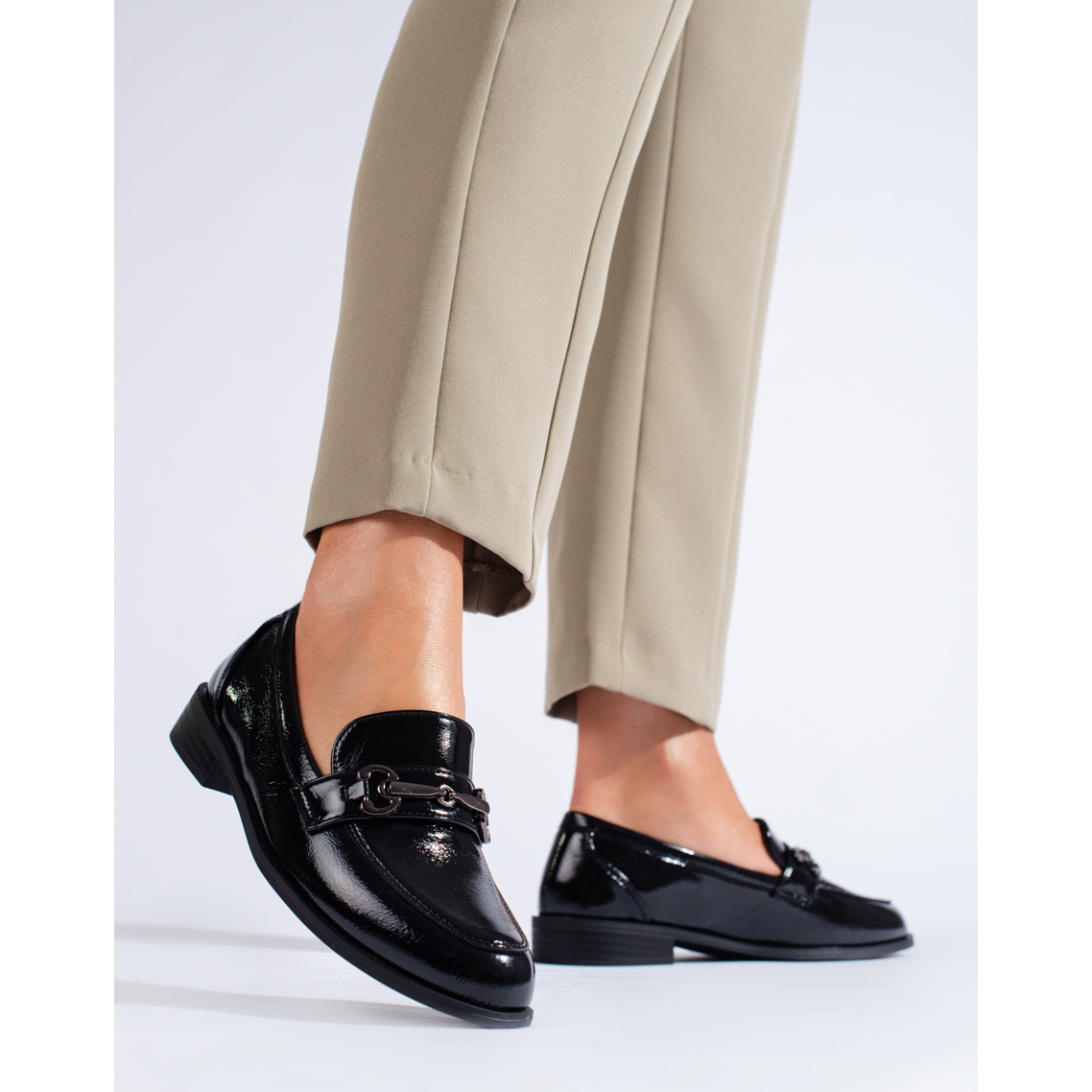 Descubra una nueva definición de estilo clásico con los elegantes mocasines negros de charol de Shelovet. Estos zapatos, diseñados para la mujer actual, complementarán a la perfección tanto conjuntos casual como más sofisticados.