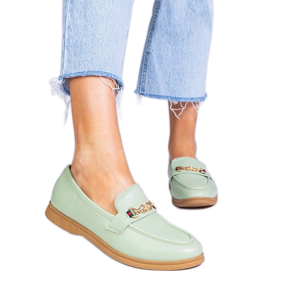 Introduzca un poco de estilo único con mocasines verdes con una decoración dorada en su guardarropa. Estos zapatos clásicos son una gran opción para las mujeres que desean combinar elegancia con la comodidad cotidiana, independientemente de la oportunidad.