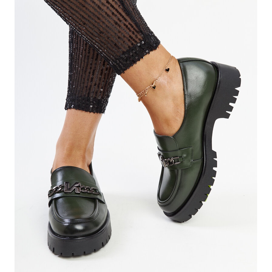 Los mocasines de cuero verde Vinceza son una gran opción para las mujeres que valoran la elegancia combinada con comodidad. Hecho de cuero natural de alta calidad, estos mocasines se deleitan no solo con su color, sino también con un acabado cuidadoso y detalles de moda en forma de cadena, lo que les da un carácter único.