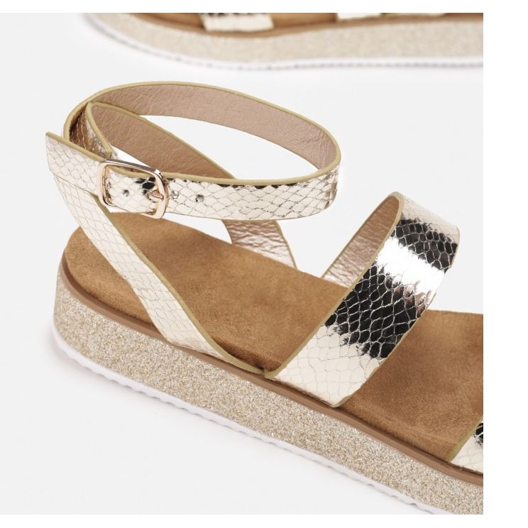 ¡Descubre la elegancia y la comodidad con las sandalias con plataforma Vices 100-167-60-oro! Estas exclusivas sandalias doradas son la elección perfecta para las mujeres que valoran el estilo y la comodidad. La plataforma de 4 cm de altura no sólo añade unos centímetros, sino que también los hace muy cómodos de llevar.