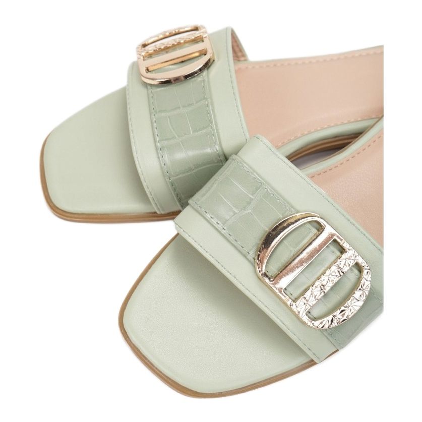 Descubre la elegancia y la comodidad en las chanclas Vices 12C-61 verde. Estas modernas chanclas planas son perfectas para el uso diario y añaden un carácter único a tu estilo. Una puntera limpia, cuadrada y abierta y una correa ancha alrededor de los dedos con un detalle decorativo que imita la piel de cocodrilo con una hebilla es una combinación perfecta de estética y funcionalidad.