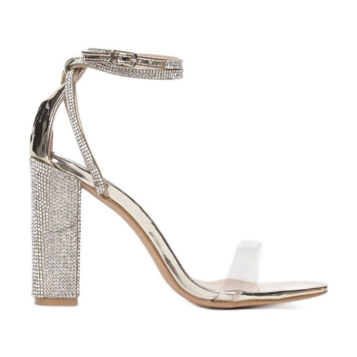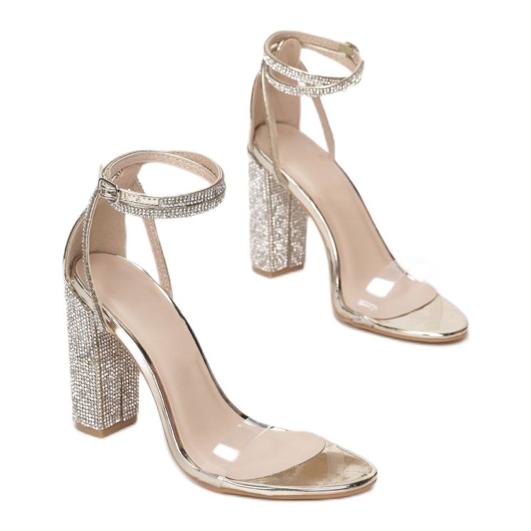 La altura del tacón de 10,5 cm, basado en un tacón de bloque, permite añadir unos centímetros de altura garantizando al mismo tiempo comodidad al caminar. El cierre de hebilla facilita ponerse y quitarse, y los elementos adicionales, como pedrería y pedrería, dan a las sandalias un carácter y brillo únicos.