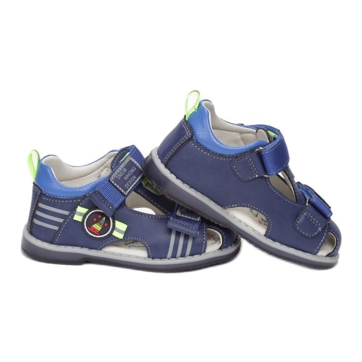 El talón rígido incorporado y la puntera redonda garantizan seguridad al jugar. Los delicados recortes en los dedos de los pies y los costados los hacen ligeros y aireados, lo que los hace perfectos para los calurosos días de verano. Las sandalias están hechas de cuero ecológico de alta calidad y las inserciones en contraste les dan un carácter moderno.