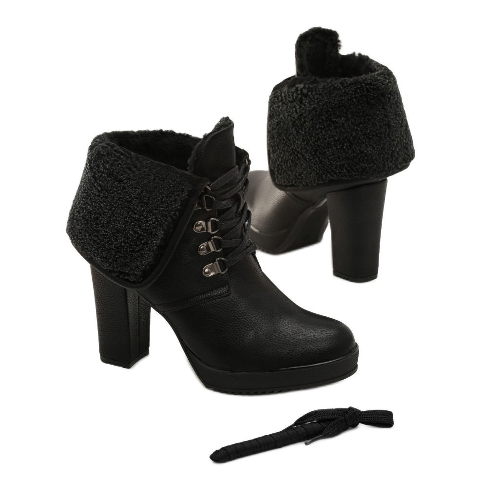 Diseñados pensando en la temporada de otoño, los botines Vices están hechos de cuero ecológico de alta calidad, lo que los hace duraderos y fáciles de cuidar. El aislamiento en forma de piel artificial proporciona calidez y comodidad, incluso en los días más fríos. La punta redonda y el sólido tacón en bloque de 10 cm de altura añaden elegancia a los zapatos y al mismo tiempo garantizan estabilidad y comodidad al usarlos.