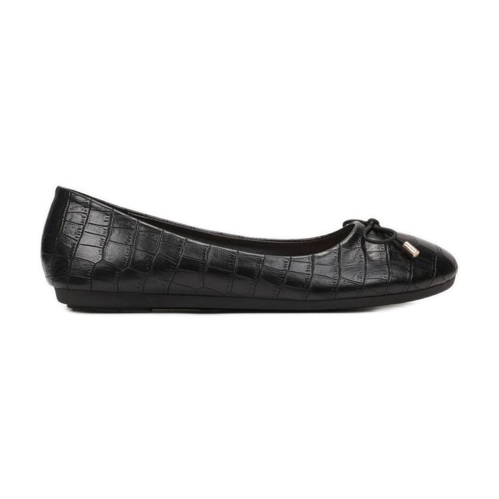 La característica distintiva de estas bailarinas es un sutil lazo del mismo color, que les aporta un encanto juvenil. La clásica punta redonda y el cuero ecológico cubierto con un patrón único que imita la piel de cocodrilo los hacen no solo estéticos, sino también muy duraderos.