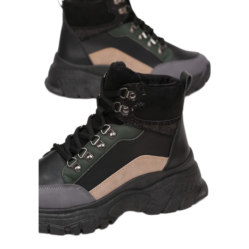 Las zapatillas Vices 8600-133 en negro con detalles en beige son una opción perfecta para las mujeres que valoran la combinación de estilo y comodidad. Estos zapatos deportivos que llegan hasta el tobillo se distinguen por una parte superior brillante, que les da un carácter moderno y los convierte en un complemento perfecto para varios estilos otoñales.