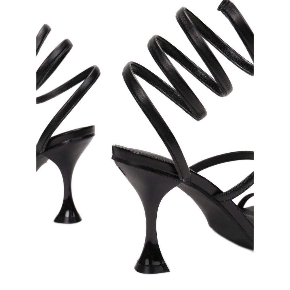 Las sandalias están hechas de cuero ecológico de alta calidad, lo que las hace no sólo modernas, sino también respetuosas con el medio ambiente. La falta de nariz y el cierre original les confieren un carácter único. El tacón de aguja de 8 cm de altura utilizado aporta ligereza y elegancia a la silueta, enfatizando las formas femeninas.