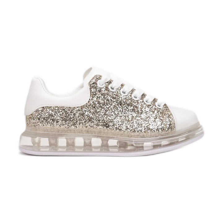 Una ventaja adicional de las zapatillas son las inserciones de purpurina en los laterales, que les confieren un carácter y un brillo únicos. Gracias a los cordones planos se pueden ajustar perfectamente al pie, lo que garantiza la estabilidad durante su uso.