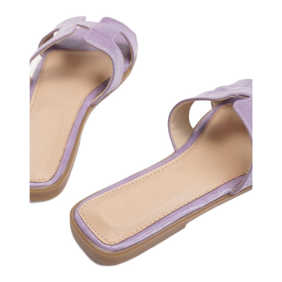Las chanclas tienen una suela sintética que garantiza estabilidad y durabilidad, y la baja altura de la plataforma de 1,0 cm hace que caminar con ellas sea un puro placer. El material exterior y el inserto están hechos de cuero ecológico de alta calidad, lo que repercute en su atractivo aspecto y comodidad de uso.