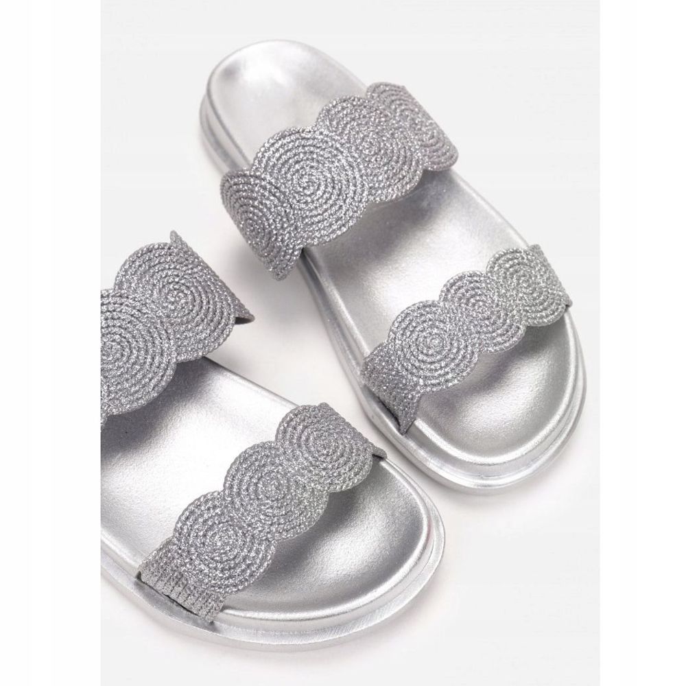 Gracias a la puntera redonda y el mediopié expuestos, las chanclas proporcionan una excelente ventilación y comodidad en los días cálidos. Su diseño único llama la atención: las tiras deslizantes onduladas, decoradas con un brillo sutil, añaden carácter y brillo únicos.