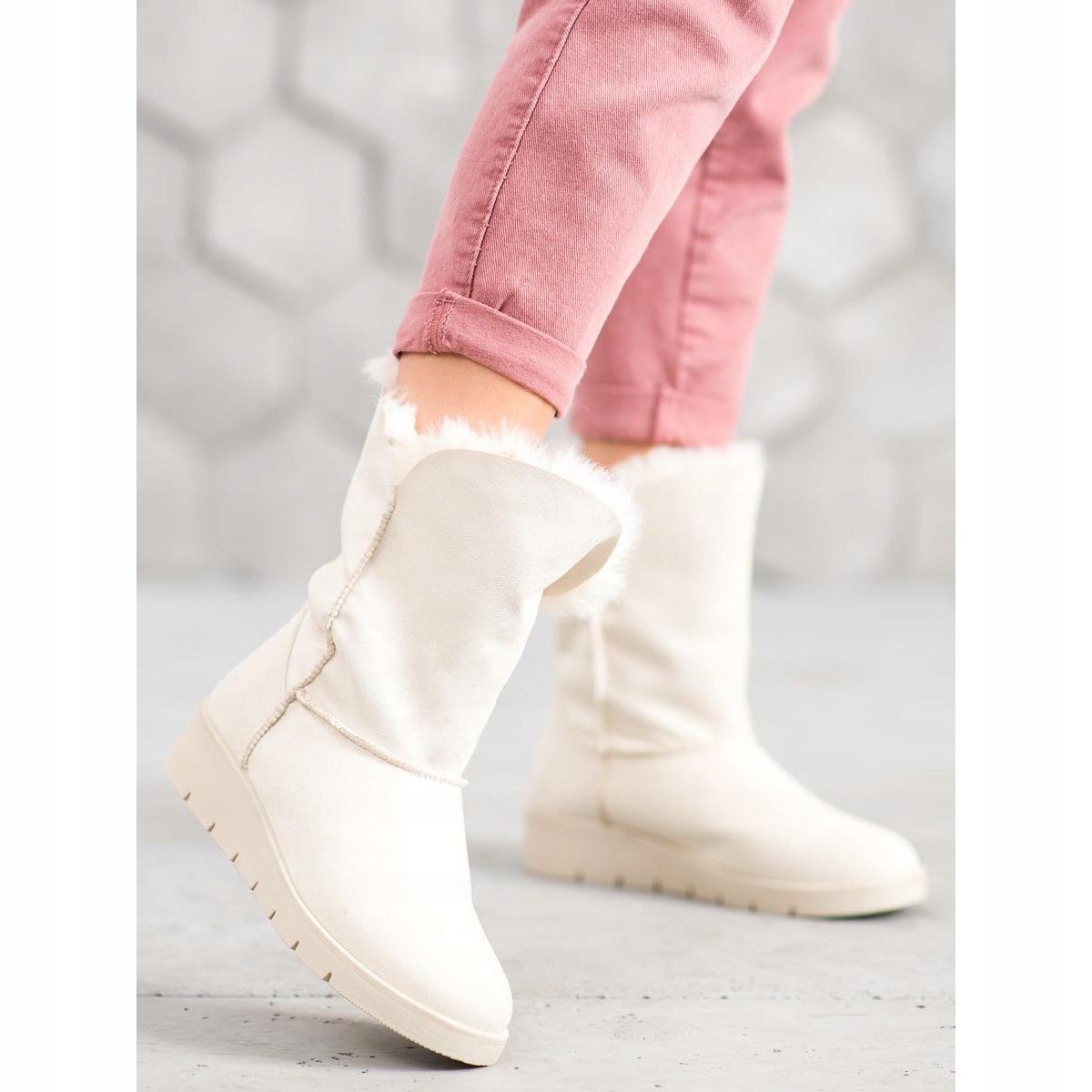 Los mukluks Kylie Warm en blanco son sinónimo de minimalismo de moda, que se adapta a las últimas tendencias. Gracias al ancho de la caña de 34 a 36 cm y a la posibilidad de girarla hacia arriba, podrás ajustarlas fácilmente a tu figura. A su vez, la suela sintética con dibujo garantiza estabilidad y tracción en diversas superficies.