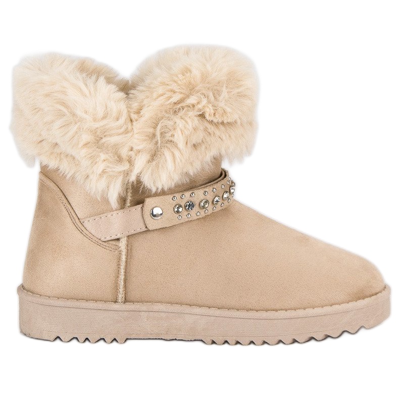 Los mukluks se caracterizan por su suave pelaje, que no sólo proporciona calidez, sino que también le da al conjunto un aspecto muy agradable. El sutil tono marrón los hace combinar perfectamente con varios estilos invernales, y los pedrería decorativos los hacen elegantes y modernos.