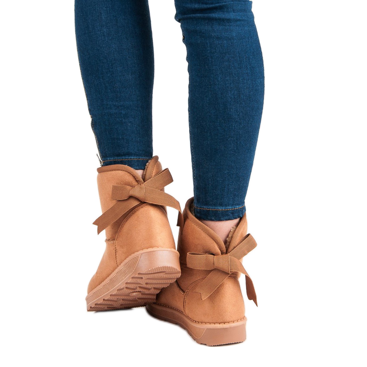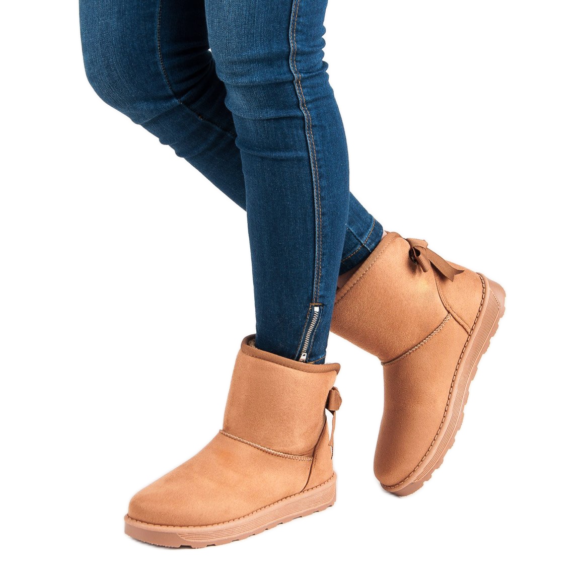 Mukluki con lazo en color marrón es una propuesta perfecta para todas las mujeres que quieren combinar estilo con comodidad en los días fríos. Estas botas de nieve únicas no sólo son estables, sino también cálidas, lo que las convierte en la elección perfecta para el próximo invierno. Hechos de gamuza ecológica de alta calidad, lucen elegantes y a la moda.