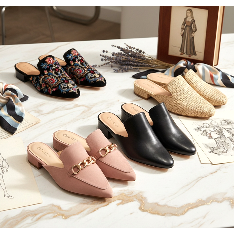 La historia de las mulas se remonta a la Europa del siglo XVI, donde la aristocracia usaba estos zapatos como calzado cómodo para el hogar. Han evolucionado a lo largo de los siglos, apareciendo en las pasarelas en varias versiones, desde elegantes tacones altos hasta modelos informales planos.