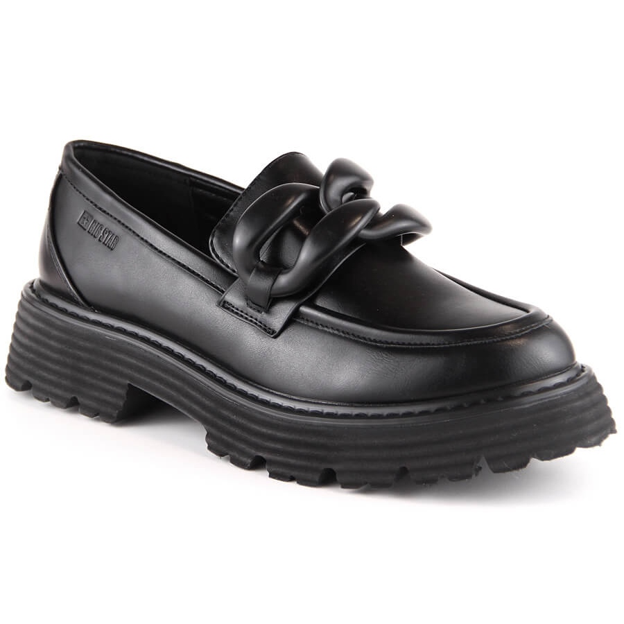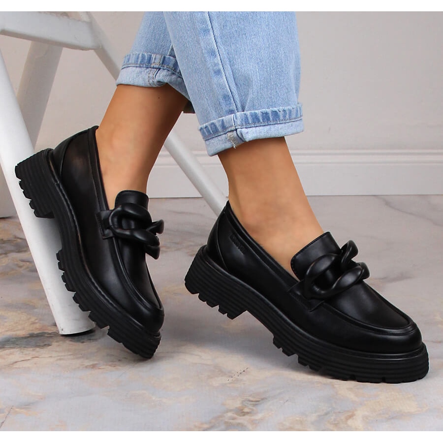 Los mocasines Black Big Star LL274580 de tacón y plataforma con cadena son una elección perfecta para la mujer moderna que valora el estilo combinado con la comodidad. Hechos de cuero ecológico de alta calidad, estos elegantes zapatos no solo son atractivos en apariencia, sino también funcionales.