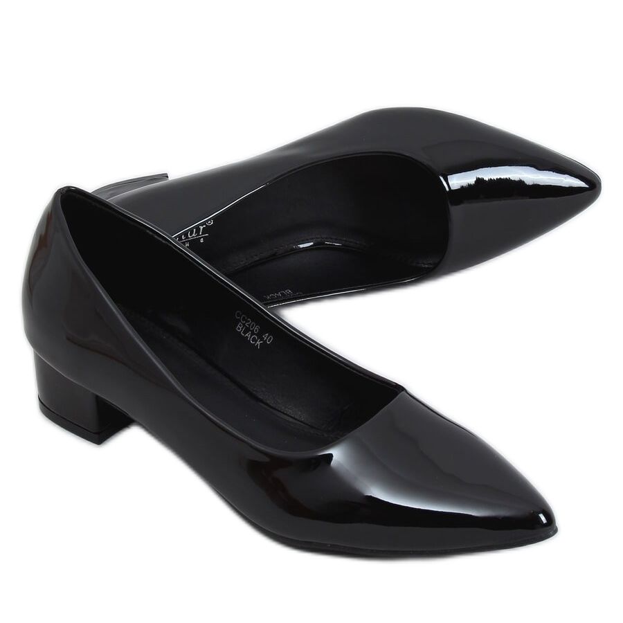 Los zapatos de salón negros de tacón bajo CC206P Black son una opción ideal para las mujeres que valoran la combinación de elegancia y comodidad. Estos tacones de mujer de 4 cm de altura deleitan por su diseño torneado y su clásico acabado charol, que los hace perfectos para multitud de ocasiones, tanto cotidianas como más formales.