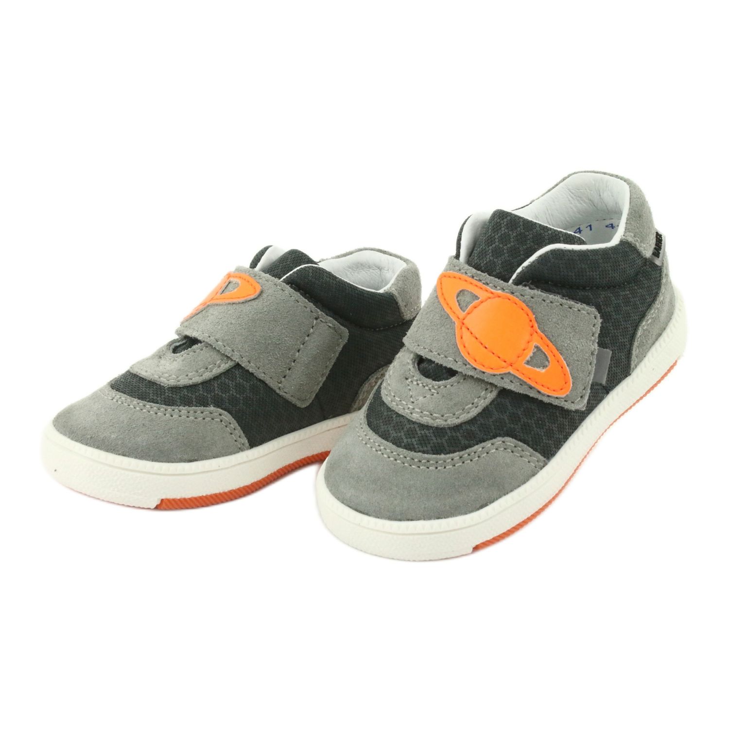 Los zapatos deportivos Bartek 71141 clásicos y cómodos hechos completamente de cuero natural en un color gris de moda con elegantes acentos de naranja. Perfecto para los viajes de primavera y alimentación a la escuela y al patio: combinan durabilidad, comodidad y soluciones estructurales seguras.