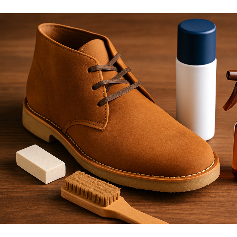 Borrador de nobuk/ante: frotar suavemente. Manchas más profundas: limpiador especial para nubuck + cepillo.