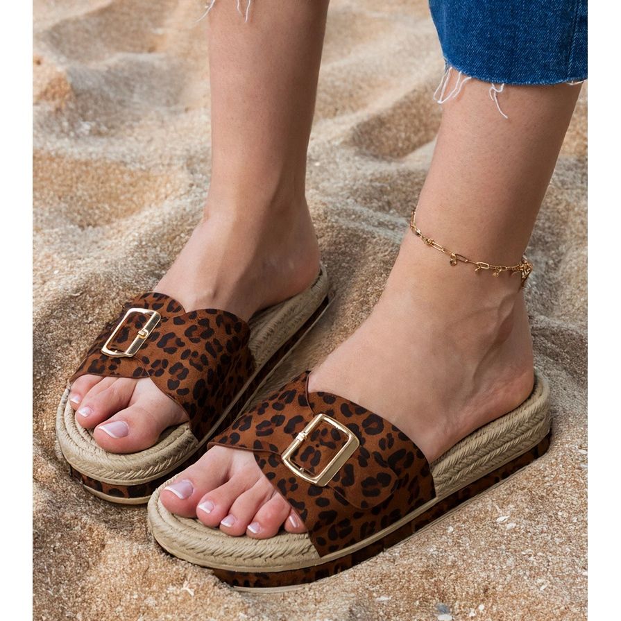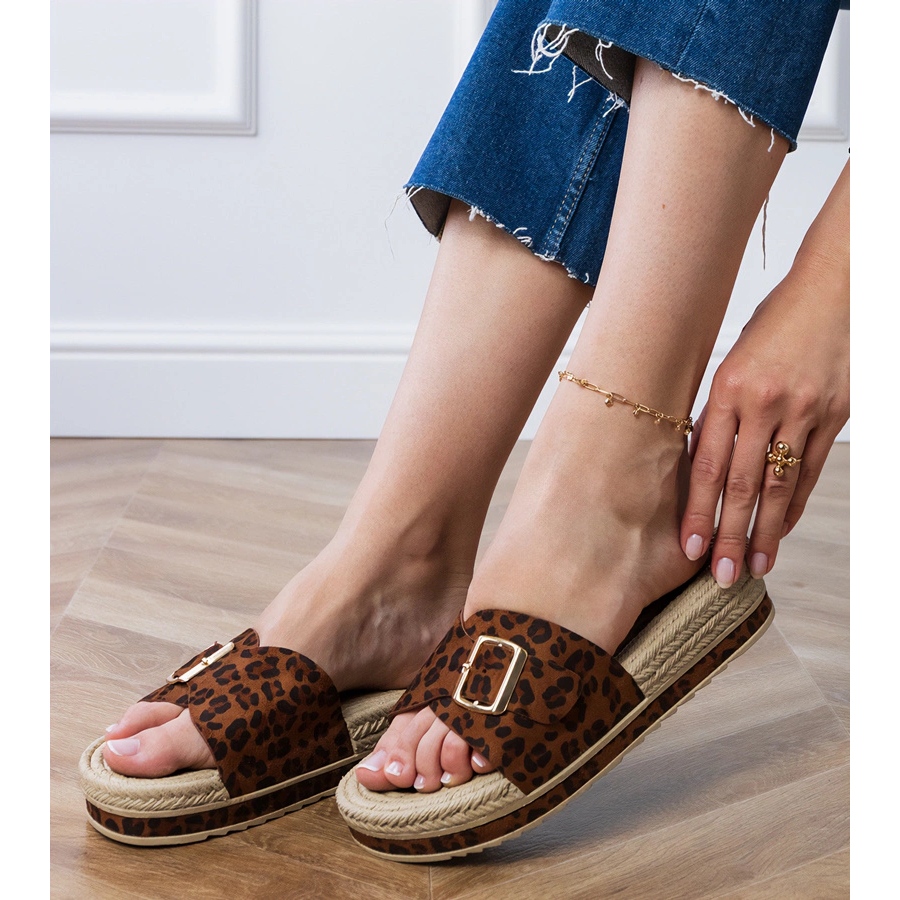 Hecho de cuero de gamuza ecológico de alta calidad, estos chanclas combinan elegancia con el estilo cotidiano. Se caracterizan por un patrón de leopardo único que agregará el carácter de cualquier estilización. Se mezclan perfectamente con vestidos de verano y pantalones cortos o jeans.