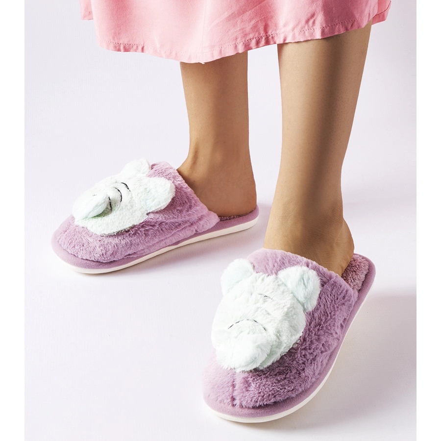 Pantuflas Bee suaves moradas y verdes púrpura