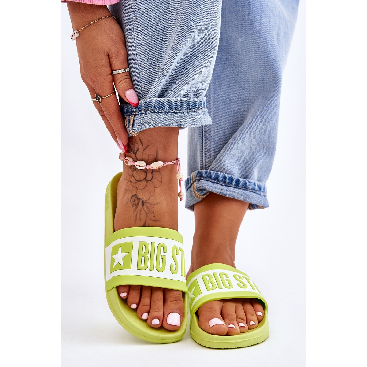 Classic y al mismo tiempo Fomen's Big Star LL274742 en un intenso sombra de lima. Hecho de material de goma duradero, con una suela de espuma y plástico perfectamente amortiguadora, perfecta para días calurosos, cuando la comodidad y la comodidad son los más importantes.