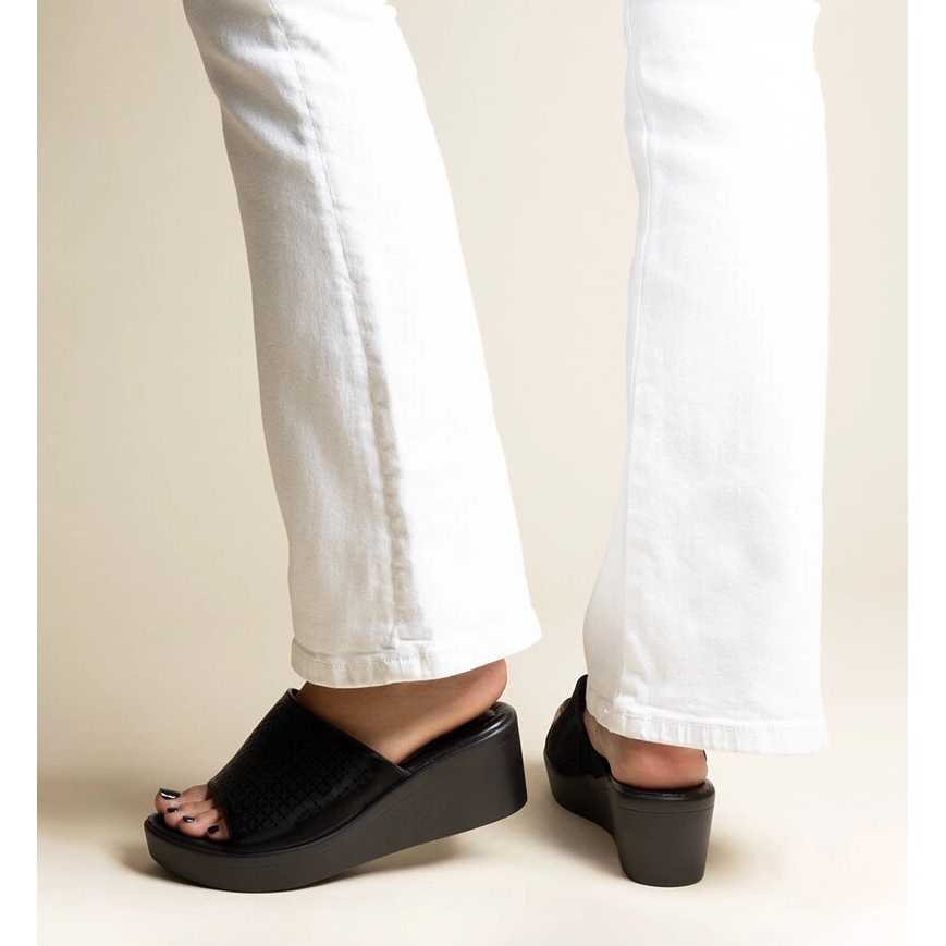 Inna marka Pantuflas con cuña caladas negras en ecopiel Garvin negro