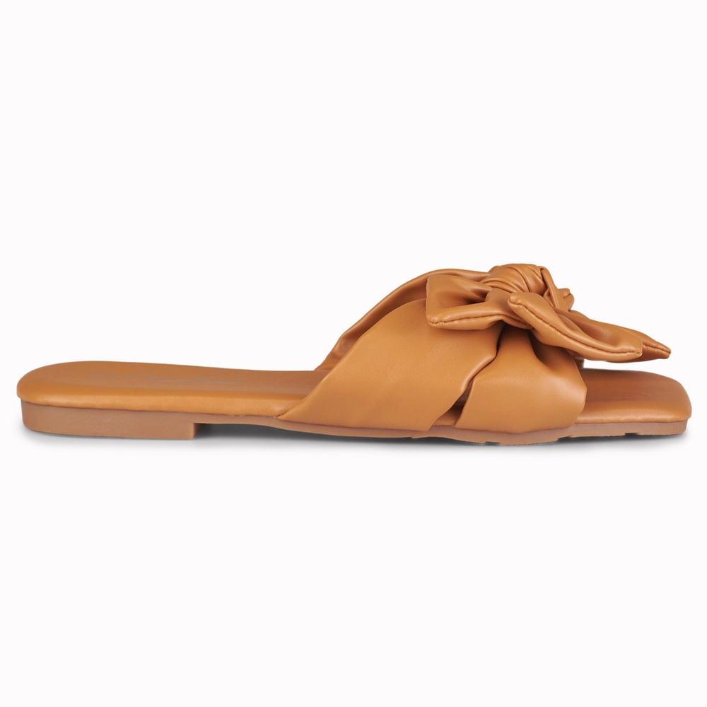 Detalles: Pantuflas con lazo color caramelo de Isanna marrón