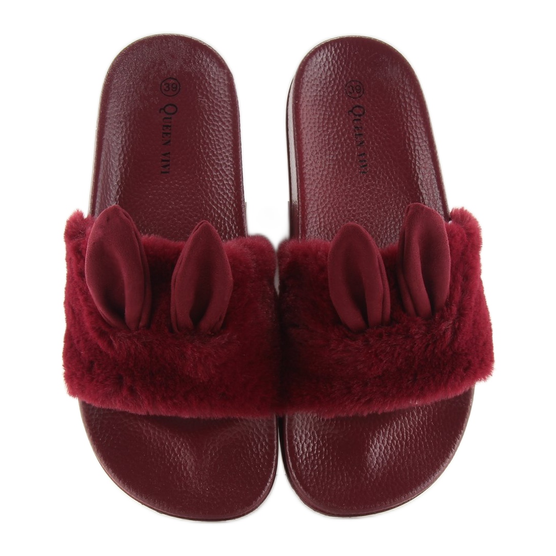 Detalles: Pantuflas con pelo y orejas granate rojo